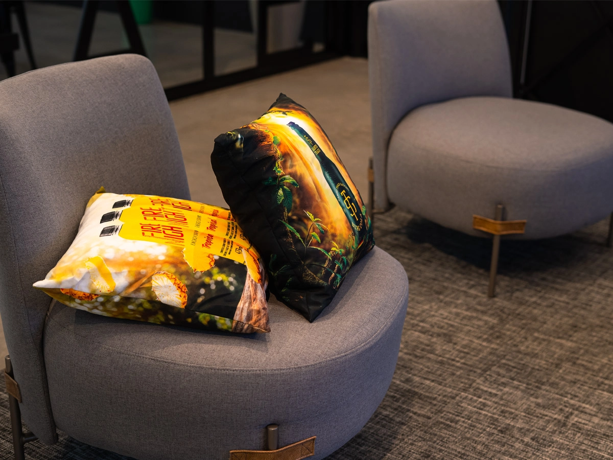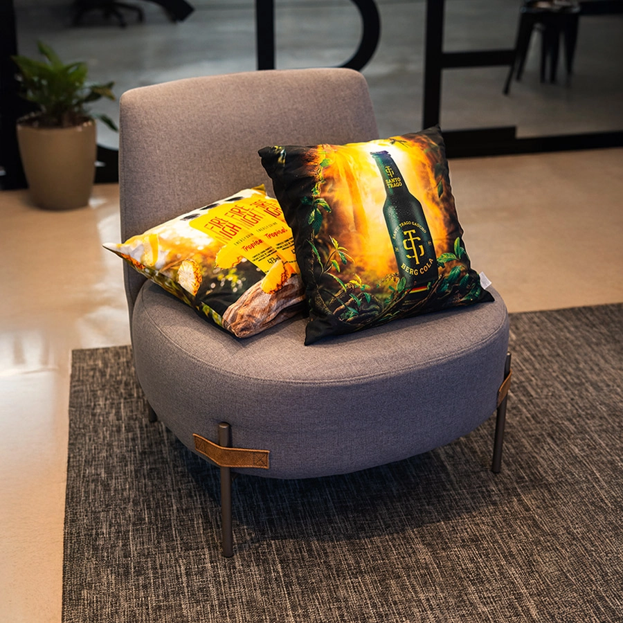 Na Guegoo, transformamos almofadas em poderosas ferramentas de ativação de marca, unindo conforto, criatividade e alto impacto visual.