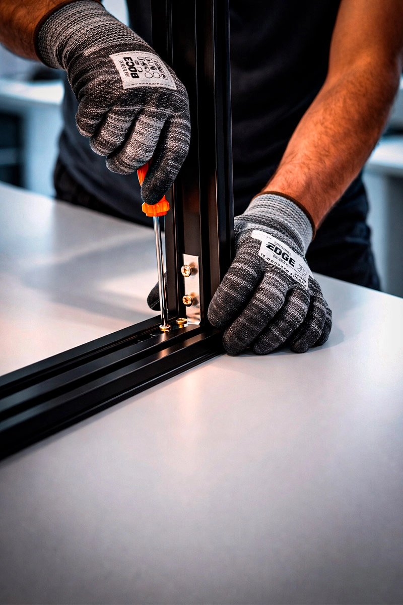 Sua estrutura é produzida com perfis de alumínio exclusivos, desenvolvidos pela própria Guegoo. O resultado é uma peça leve, resistente e com acabamento em pintura epóxi, que garante durabilidade e um visual sofisticado em qualquer ambiente.