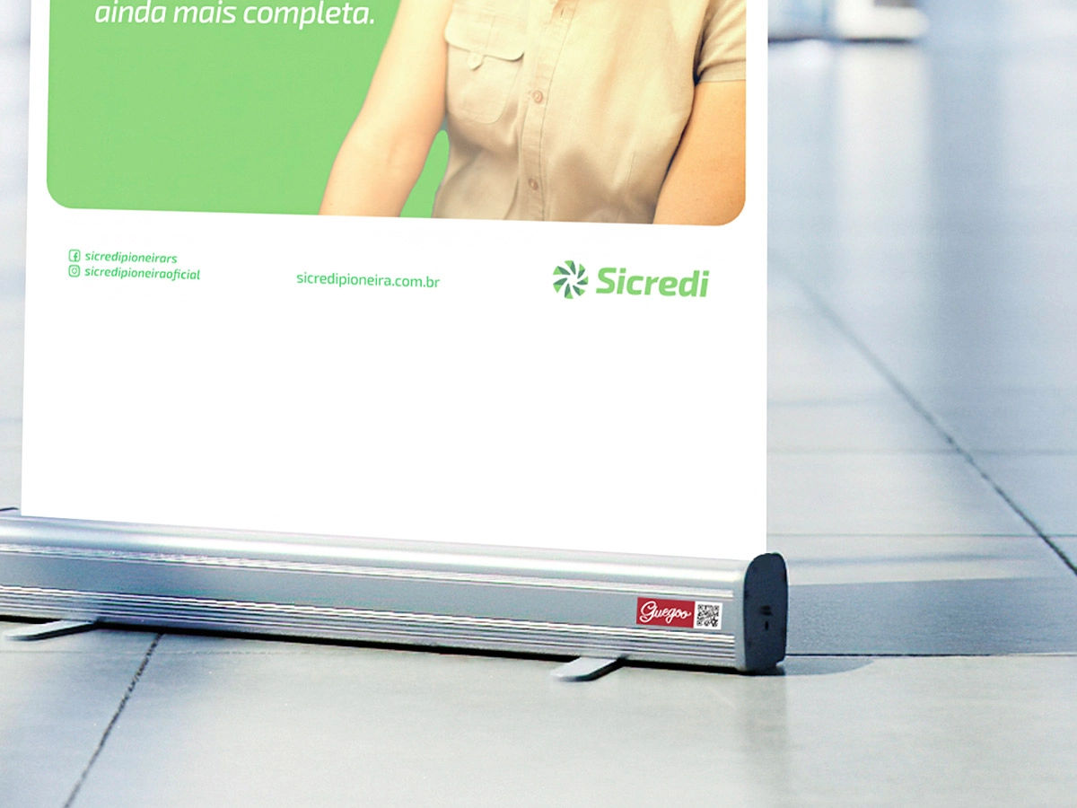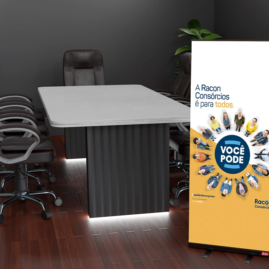 O RollUp Guegoo é a solução ideal para quem busca praticidade, elegância e impacto visual em um único produto. Com estrutura em alumínio e sistema retrátil, o banner é armazenado com segurança dentro da própria base, mantendo a imagem protegida quando fora de uso e facilitando o transporte.