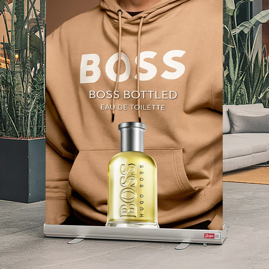 Extremamente leve e compacto, o RollUp oferece vantagens significativas em manuseio, instalação e logística, sendo perfeito para pontos de venda com banners promocionais de marcas e produtos, ambientes corporativos com sinalizações e comunicações institucionais, e até espaços decorativos ou cenográficos em eventos, feiras e apresentações. Disponível nos formatos 60x160cm, 80x200cm, 100x200cm e 120x200cm, o RollUp Guegoo se adapta a diferentes projetos e necessidades com sofisticação, eficiência e alto impacto visual.
